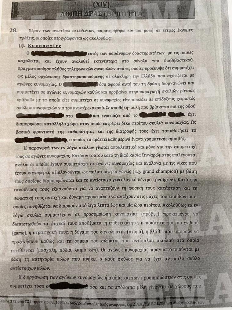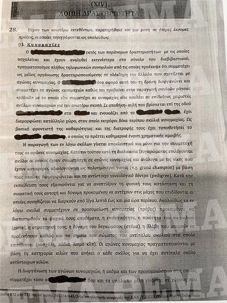 Ακόμη δραστηριοποιούνταν και σε άλλες παράνομες δραστηριότητες όπως η διοργάνωση παράνομων κυνομαχιών σε όλη τη χώρα και η διενέργεια παράνομων χαρτοπαιγνίων, σε συνδυασμό με πράξεις τοκογλυφίας. Μάλιστα στην οικία του αρχηγού της εγκληματικής οργάνωσης, εντοπίστηκαν (5) σκυλιά που χρησιμοποιούσε για κυνομαχίες, τα οποία μεταφέρθηκαν σε κέντρο περίθαλψης αδέσποτων ζώων.