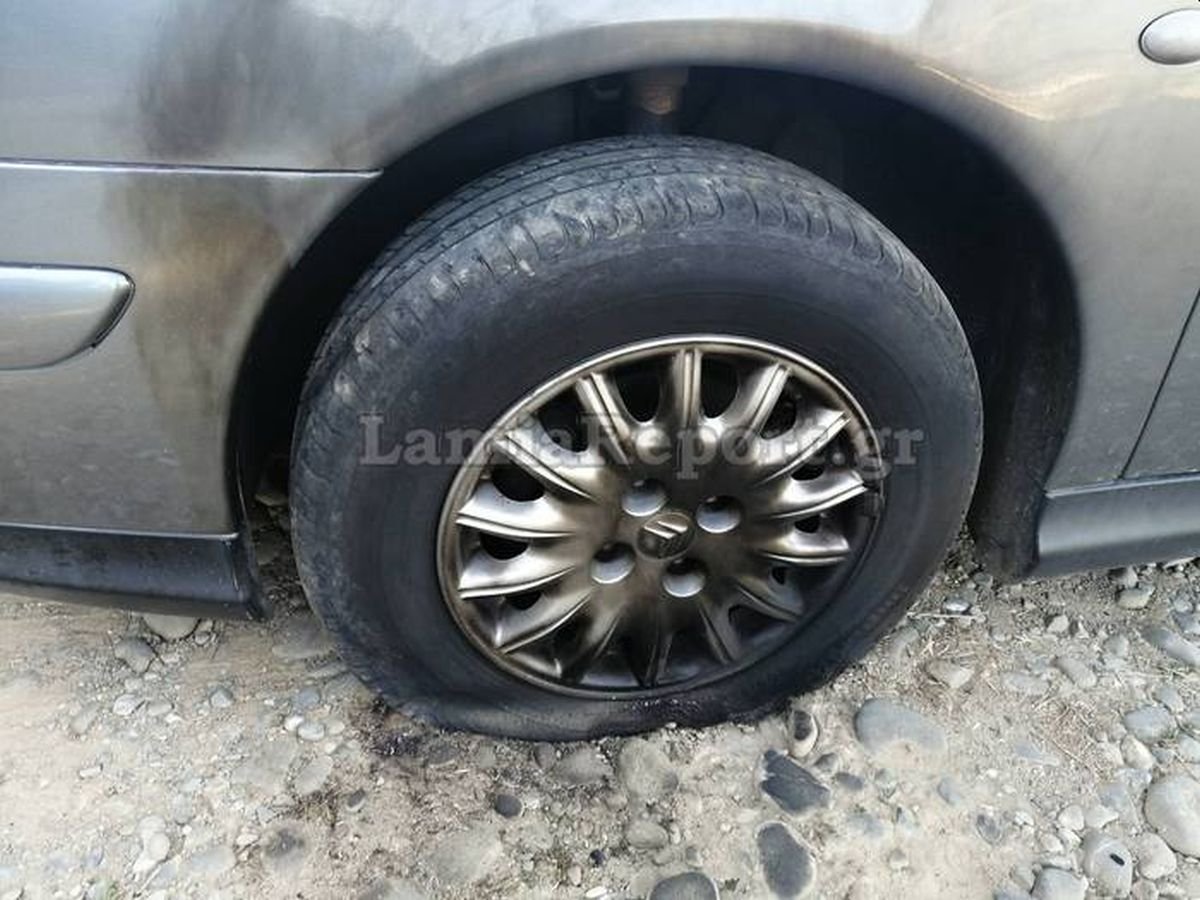 Το πρωί που πήγε να φορτώσει πράγματα καθώς θα επέστρεφε Αθήνα, διαπίστωσε ότι στον μπροστινό αριστερό τροχό, υπήρχε μπουκαλάκι με πετρέλαιο, ενώ είχε προκληθεί ζημιά στο λάστιχο και στο φτερό από μικρής έκτασης πυρκαγιά!