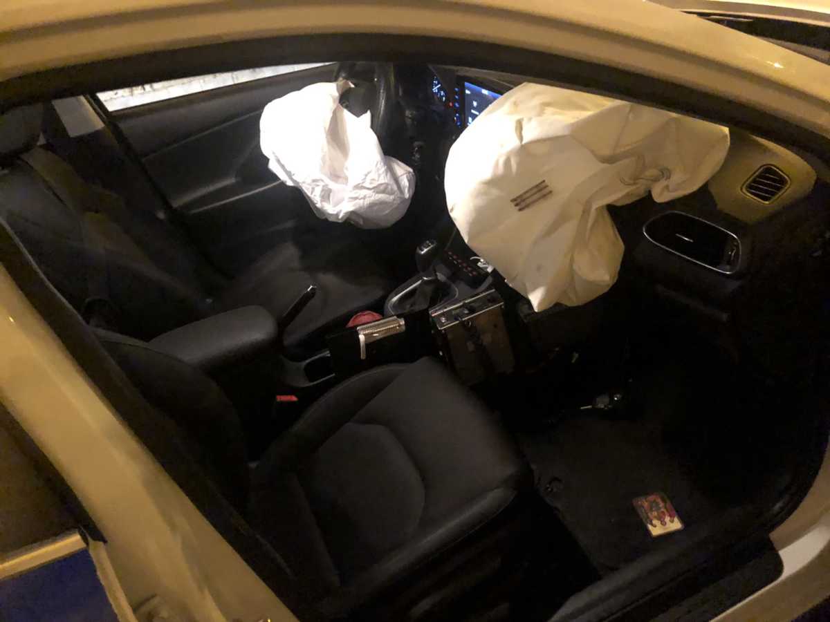 Πίσω από το κτήριο του ΦΙΞ οι αστυνομικοί κατάφεραν να εγκλωβίσουν, έστω και εν κίνηση, το αυτοκίνητο των υπόπτων. Ο οδηγός του ύποπτου αυτοκινήτου, σε μια απέλπιδα προσπάθεια να ξεφύγει από των αστυνομικό κλοιό, έβαλε όπισθεν και εμβόλισε το ένα περιπολικό με αποτέλεσμα αυτό να καταλήξει με σφοδρότητα σε δεύτερο περιπολικό που βρίσκονταν πίσω από το αρχικό όχημα.