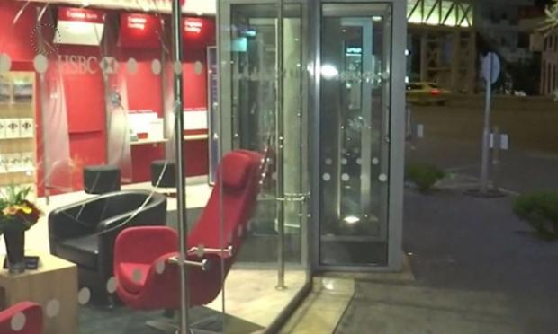 Φθορές με βαριοπούλες και σφυριά προκάλεσαν άγνωστοι γύρω στις 03:00 τα ξημερώματα σε τράπεζα στο Μαρούσι.