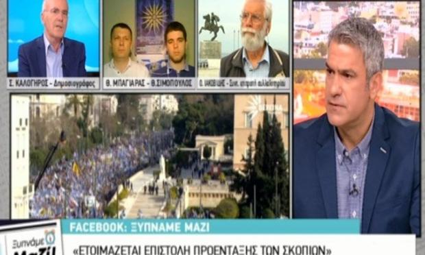 "Στις 8 Ιουλίου θα κάνουμε συλλαλητήριο στην Αθήνα. Αυτό που θα γίνει σήμερα σε 24 πόλεις είναι πολύ καλό, θα συγκεντρωθούν για να διαμαρτυρηθούν για την κυβερνητική πολιτική που θέλει να χαρίσει το όνομα της Μακεδονίας και την Ιστορία μας στα Σκόπια. Μετά τα σημερινά πετυχημένα συλλαλητήρια, στις 8 Ιουλίου θα είμαστε στην Αθήνα" δήλωσε ο δημοσιογράφος και διοργανωτής του συλλαλητηρίου που θα γίνει στην Αθήνα, Στέργιος Καλόγηρος στην εκπομπή στο Epsilon.