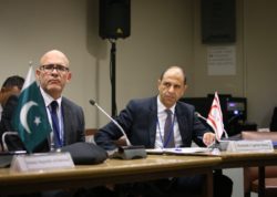 Δίπλα από τον Οζερσάι, διακρίνεται και η σημαία του Πακιστάν. Σύμφωνα με σχετική είδηση που μεταδίδεται από Τ/κ Μ.Μ.Ε, ο κ. Οζερσάι, συμμετείχε την Παρασκευή (27/9), στη σύνοδο του Οργανισμού Οικονομικής Συνεργασίας - Organisation of Economic Cooperation - (ECO).