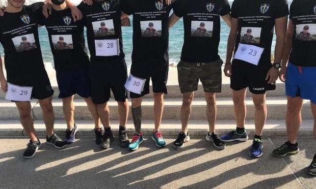 Στις φωτογραφίες απεικονίζονται οι έφεδροι καταδρομείς με μπλούζες που φέρουν τη φωτογραφία του ήρωα και τη φράση «Η Ελλάδα αρχίζει από την Κερύνεια και τελειώνει στη Βόρειο Ήπειρο - Δεν Ξεχνώ»