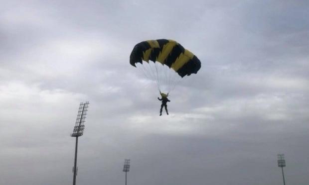 Εντυπωσιακό βίντεο με τους αλεξιπτωτιστές της Εθνικής Φρουράς να εισέρχονται στον αγωνιστικό χώρο του "ΑΕΚ Αρένα" με την μπάλα που διεξήχθη το Football All Stars Day