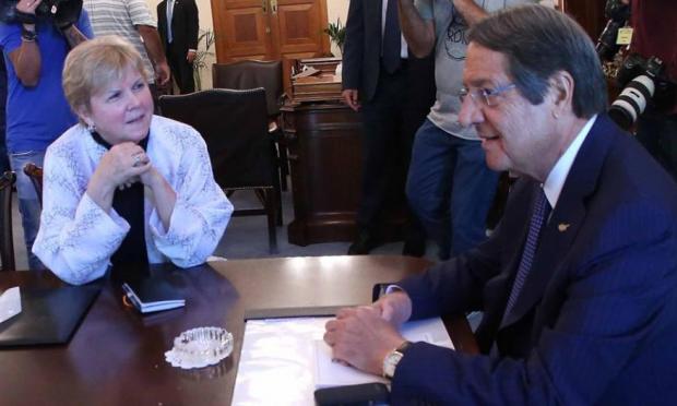 Η συνάντηση του Προέδρου της Δημοκρατίας της Κύπρου, Νίκου Αναστασιάδη, με την Ειδική Απεσταλμένη του ΓΓ του ΟΗΕ Τζέιν Χολ Λουτ, ολοκληρώθηκε πριν από λίγο.