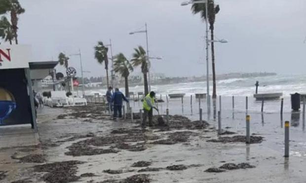 Πέτρες, φύκια, φερτά υλικά και θαλασσινό νερό γέμισαν τον μόλο και το οδόστρωμα, με αποτέλεσμα η διακίνηση στην περιοχή να είναι δυσχερής. Με την αποκάλυψη της κατάστασης όταν ξημέρωσε, συνεργεία του Δήμου Πάφου μετέβησαν άμεσα στη σκηνή αρχίζοντας, με οδηγίες του Δημάρχου Φαίδωνα Φαίδωνος, κατά προτεραιότητα το έργο του καθαρισμού της περιοχής.