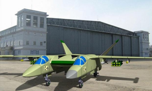 Στην συνέχεια και με την πάροδο των ετών αναπτύχθηκε από το γραφείο Sukhoi το σχέδιο Τ-12. Πρόκειται για ένα πολύ ασυνήθιστο είδος αεροσκάφους. Αυτό είχε ένα σώμα στήριξης με δύο καμπίνες μεταξύ των οποίων εισέρχονται κανάλια εισόδου αέρα. Ο οπλισμός στεγάζεται κυρίως στα δύο εσωτερικά διαμερίσματα.