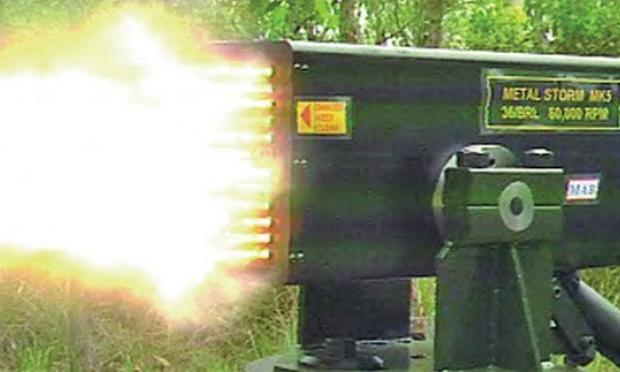 «Storm» είναι η καταιγίδα στα αγγλικά και «Metal Storm» είναι ένας ανεμοστρόβιλος που χτυπά σε ασύλληπτους ρυθμούς και ταχύτητες. Το Metal Storm είναι ένα όπλο- τέρας, με ασύλληπτες δυνατότητες καθώς ρίχνει ένα εκατομμύριο βολές το λεπτό! Το πολυβόλο, κατασκευάστηκε από μια αυστραλιανή εταιρεία όπλων, την Metal Storm Inc.