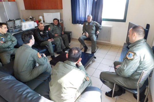 Εκεί τον υποδέχθηκε ο διοικητής της, σμήναρχος Παναγιώτης Βάλσαμος.