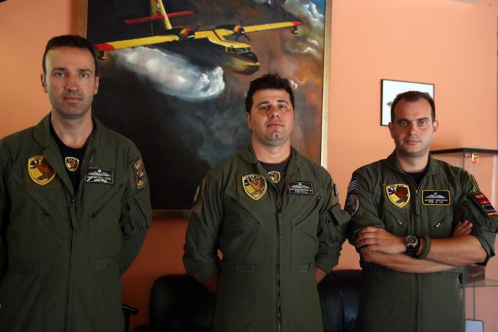 Πρόκειται για τους πιλότους και τους μηχανικούς των Canadair CL-215 που έχουν τη βάση τους στην 355 Μοίρα Τακτικών Μεταφορών και τις ημέρες αυτές δίνουν τον αγώνα μαζί με τους πυροσβέστες και τους εθελοντές να θέσουν υπό έλεγχο τις φωτιές που έχουν ξεσπάσει στην Ελλάδα.