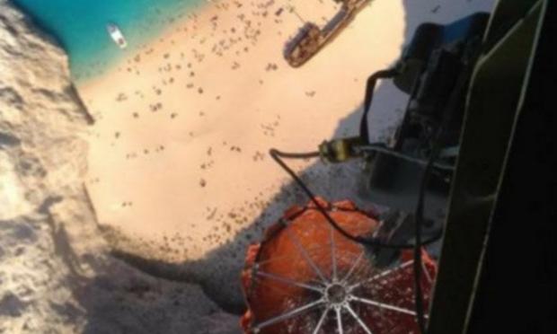 CHINOOK CH47 φωτογράφησε το πανέμορφο ναυάγιο της Ζακύνθου ενώ έχει κάνει ήδη ανεφοδιασμό στον ειδικό σάκο-κουβά που φέρει στο κάτω τμήμα του. Με μια γρήγορη ματιά, κανείς θα υπέθετε οτι πρόκειται για μια φωτό από drone και πως o κάδος του ΣΙΝΟΥΚ είναι… ομπέλα θαλάσσης. Η φωτογραφία ανέβηκε στο facebook και άρχισε να κάνει το γύρο του διαδικτύου…