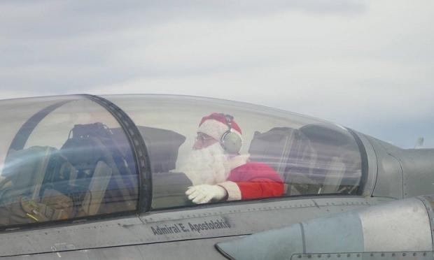 Στα πανηγύρια και στα χάπενινγκ είναι πρώτοι στα διοικητικά κλιμάκια της ΠΑ. Στην καταδίωξη της τουρκικής κορβέτας σήμερα, το σύστημα χρεοκόπησε: Ο Άγιος Βασίλης πήγες με... F-16 στη Λάρισα και προσγειώθηκε στην 110 Πτέρυγα Μάχης της Πολεμικής Αεροπορίας.