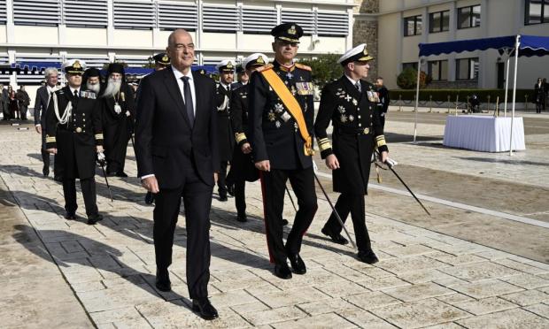 Ο Υπουργός Εθνικής Άμυνας, Νίκος Δένδιας, παρέστη σήμερα, Σάββατο 6 Δεκεμβρίου 2025, ως εκπρόσωπος του Προέδρου της Κυβέρνησης, στην τελετή επίσημου εορτασμού του Προστάτη του Πολεμικού Ναυτικού, Αγίου Νικολάου, η οποία πραγματοποιήθηκε στη Σχολή Ναυτικών Δοκίμων, στον Πειραιά.