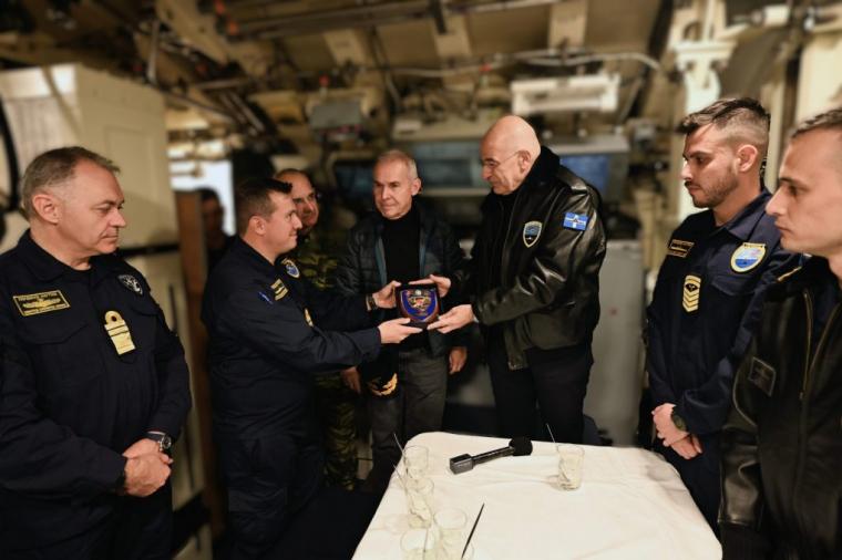 Ο Υπουργός Εθνικής Άμυνας Νίκος Δένδιας επιβιβάσθηκε χθες, Πέμπτη 11 Δεκεμβρίου 2025, στο υποβρύχιο «Πιπίνος» τύπου 214 του Πολεμικού Ναυτικού, από το οποίο παρακολούθησε βολή νέου τύπου τορπίλης «SeaHake mod4» εναντίον στόχου επιφανείας, κατά τη διάρκεια διεξαγωγής της άσκησης «Περισκόπιο».