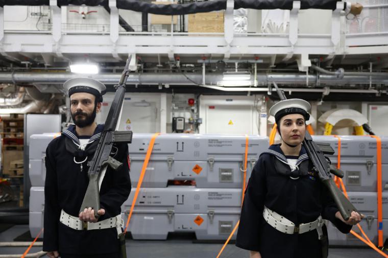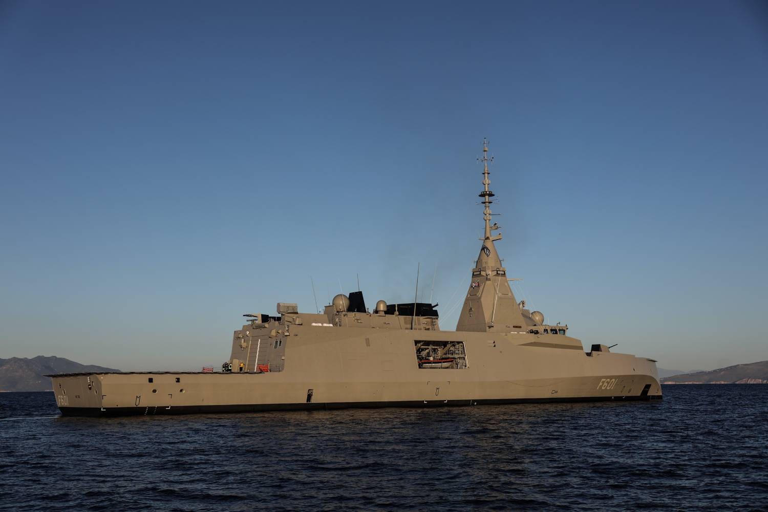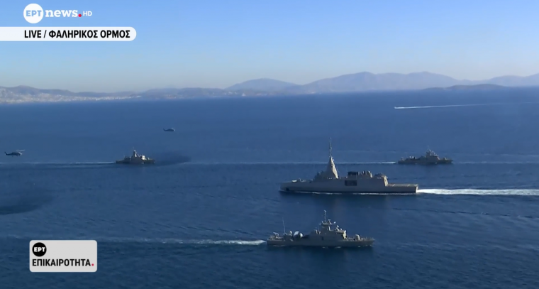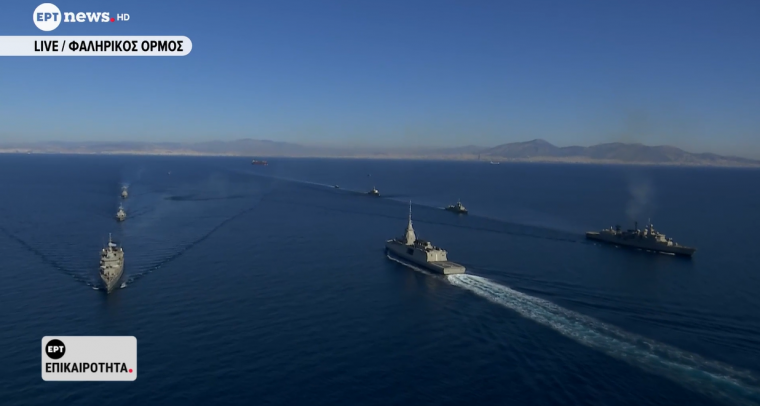 Ήδη ο Στόλος υποδέχτηκε τη φρεγάτα «Κίμων» νότια της Πελοποννήσου με τη φρεγάτα «Αιγαίον» η οποία συμμετέχει στην επιχείρηση IRINI και για λίγη ώρα έπλευσε δίπλα στην πρώτη FDI.
