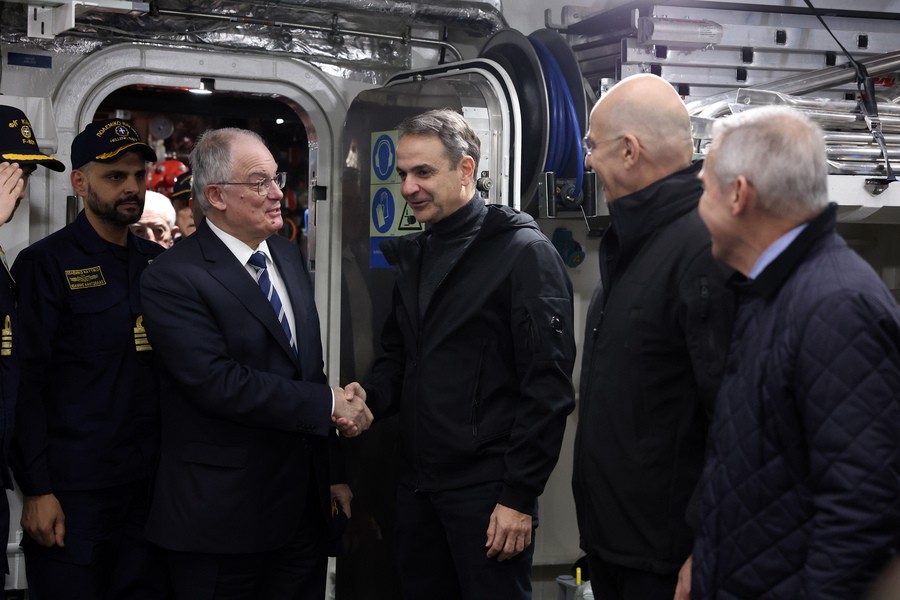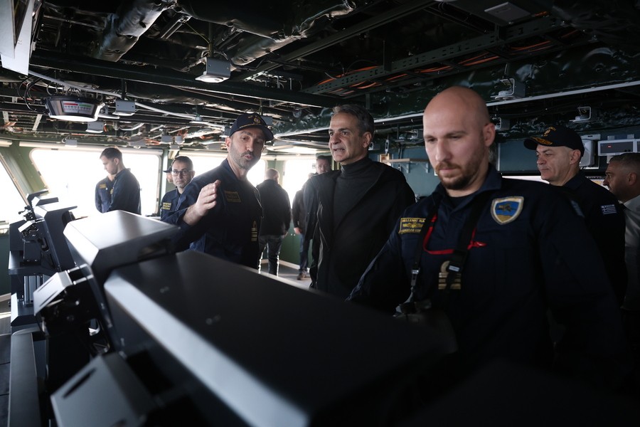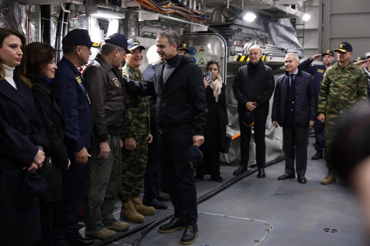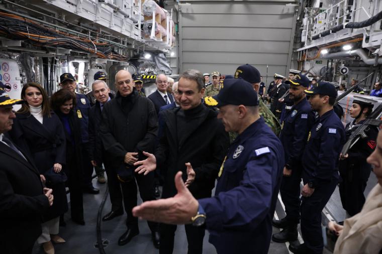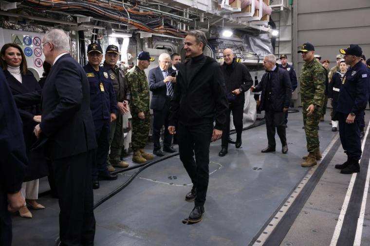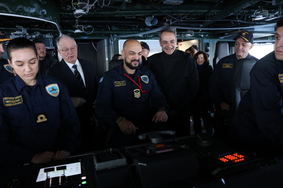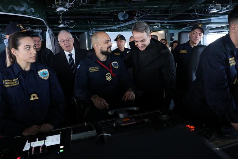 Στη φρεγάτα Κίμων βρίσκονται εδώ και λίγη ώρα ο Πρόεδρος της Δημοκρατίας, Κωνσταντίνος Τασούλας, και ο πρωθυπουργός, Κυριάκος Μητσοτάκης