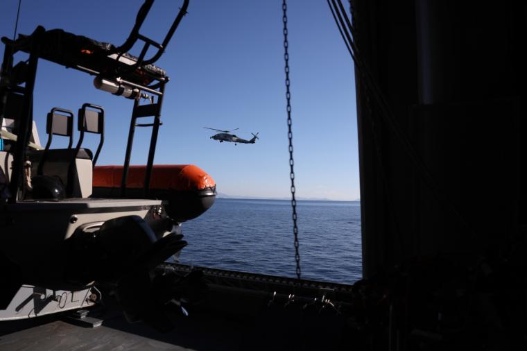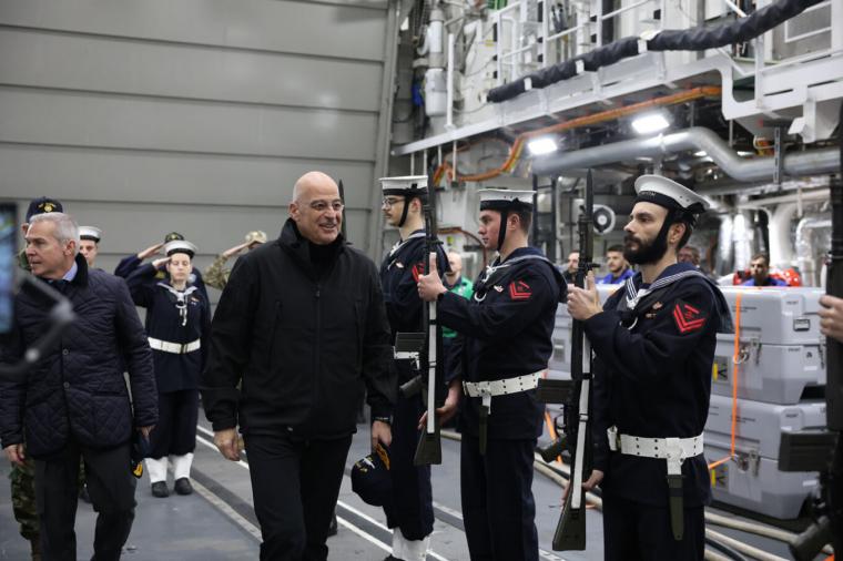 Ο υπουργός Εθνικής Άμυνας Νίκος Δένδιας έφτασε με ελικόπτερο του Πολεμικού Ναυτικού πάνω στην φρεγάτα «Κίμων».