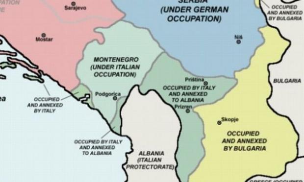 Όπως βλέπετε και στην εικόνα, στον χάρτη της διχοτόμησης των Σκοπίων από τους Γερμανούς και τους συμμάχους τους, το κίτρινο χρώμα είναι η βουλγαρόφωνη περιοχή που είχε προσαρτηθεί στη Βουλγαρία και το πράσινο η αλβανόφωνη.
