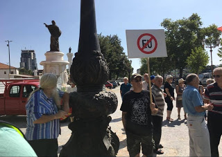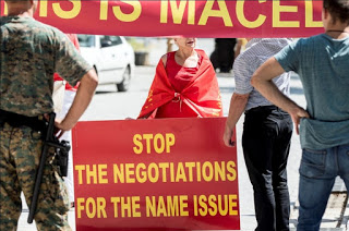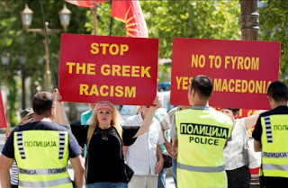 Οι Σλάβοι μακεδονιστές των οργανώσεων «Παγκόσμιο Μακεδονικό Κογκρέσο» και «Μακεδονικό Μανιφέστο», διαδήλωσαν ειρηνικά, κρατώντας στα χέρια σημαίες με τον Ήλο της Βεργίνας και συνθήματα κατά της ΕΕ και της αλλαγής της συνταγματικής ονομασίας της χώρας, καθώς και χάρτες της λεγόμενης ‘Μεγάλης Μακεδονίας’, που περιλαμβάνει όλη την αρχαία γεωγραφική Μακεδονία.