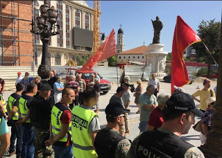 Αστυνομικές δυνάμεις περιφρουρούσαν τους μακεδονιστές των Σκοπίων, οι οποίοι ήταν περίπου 30 άτομα, σύμφωνα με τα σλαβικά μέσα ενημέρωσης της πρώην γιουγκοσλαβικής δημοκρατίας.