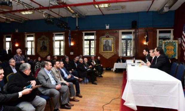 Πρόεδροι και στελέχη 18 εθνικοτοπικών ομοσπονδιών που ανταποκρινόμενοι στο κάλεσμα της Παμμακεδονικής Ένωσης ΗΠΑ και της Ομοσπονδίας Ελληνικών Σωματείων Μείζονος Νέας Υόρκης συγκεντρώθηκαν το πρωί του Σαββάτου στο «Σταθάκειο Κέντρο» στην Αστόρια, ενέκριναν ψήφισμα με το οποίο ξεκαθαρίζουν ότι δεν πρόκειται ποτέ να αποδεχθούν συμφωνία για την ονομασία των Σκοπίων που θα περιέχει τον όρο Μακεδονία ή παράγωγό του. Το ψήφισμα μέχρι στιγμής συνυπογράφεται από 21 ομοσπονδίες.