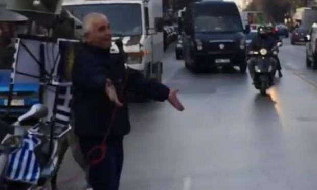 Στο στόχαστρο κάποιων μπήκε ένας ηλικιωμένος, που κυκλοφορούσε στη Θεσσαλονίκη με το μηχανάκι του, φωνάζοντας συνθήματα για την ελληνικότητα της Μακεδονίας.