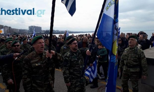 Έφεδροι ειδικών δυνάμεων έφτασαν πριν από λίγο στο Άγαλμα του Μεγάλου Αλεξάνδρου, στην ομώνυμη Λεωφόρο της Θεσσαλονίκης, τραγουδώντας το "Μακεδονία Ξακουστή".