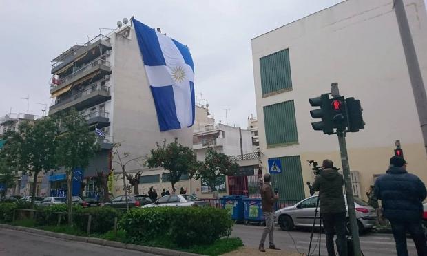Εντύπωση προκάλεσε μια τεράστια σημαία που ξετυλίχτηκε σε πολυκατοικία στην Καλλιθέα.