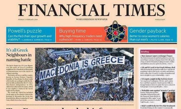 Με πρώτο θέμα το συλλαλητήριο στην Αθήνα για το Σκοπιανό, κυκλοφορούν τη Δευτέρα οι Financial Times.