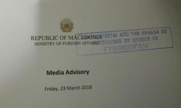 Από από το «Δημοκρατία της Μακεδονίας» μπήκε σφραγίδα με τη φράση «Αναγνωρίζεται από την Ελλάδα ως ΠΓΔΜ«.
