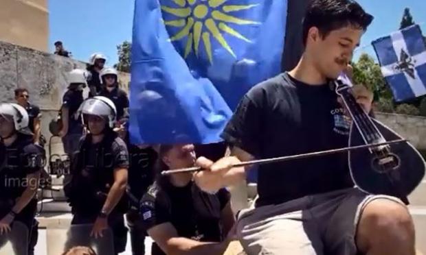 Κρητικοί που συμμετείχαν στο συλλαλητήριο της Αθήνας για τη Μακεδονία, που πραγματοοποιήθηκε πριν από λίγες ημέρες, τραγούδησαν το «Μακεδονία Ξακουστή», μπροστά από τη Βουλή, συνοδεία κρητικής λύρας και μπροστά από τα ΜΑΤ.