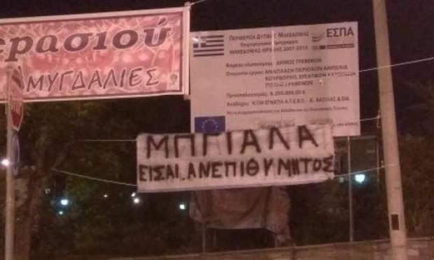 Οπως αναφέρει το Greveniotis.gr, άγνωστοι, το βράδυ της Πέμπτης, ανήρτησαν πανό στην είσοδο της πόλης των Γρεβενών, με το οποίο χαρακτηρίζουν ανεπιθύμητο τον Χρήστο Μπγιάλα.
