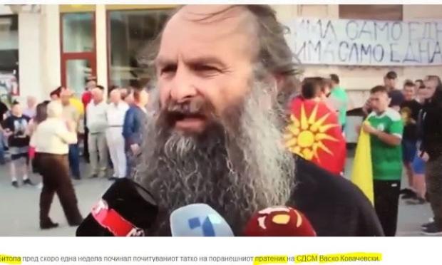 Ο πατήρ Στέφαν συμμετέχει ενεργά στις εκδηλώσεις διαμαρτυρίας του VMRO-DPMNE κατά της αλλαγής της συνταγματικής ονομασίας της χώρας, όπως αναφέρει το δημοσίευμα.