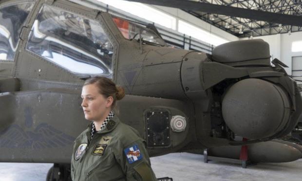 «Ειδικότητα τεχνίτης ηλεκτρονικών, ηλεκτρολογικών και οπλικών συστημάτων του επιθετικού ελικοπτέρου Απάτσι Δέλτα». Μέχρι εκεί. Κοφτά, γρήγορα. Βλέμμα σταθερό, έξυπνο, αποφασιστικό, ματιά που “γυαλίζει” συνοδεύει την απάντηση της νεαρής επαγγελματία στην ερώτηση. Η επιλοχίας Αεροπορίας Στρατού Όλγα Τσακνάκη, δεν βρέθηκε τυχαία να εργάζεται σε έναν χώρο που θεωρείται ανδροκρατούμενος.
