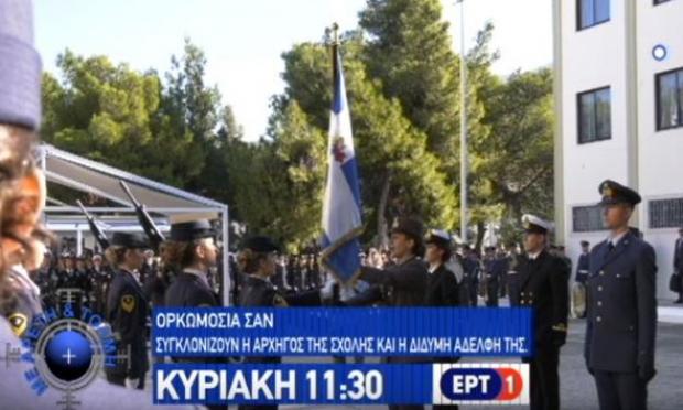 Στην εκπομπή «Με Αρετή και Τόλμη», την Κυριακή 29 Οκτωβρίου 2017, στις 11.30 το πρωί, στην ΕΡΤ1 θα δείτε μεταξύ άλλων στιγμές συγκίνησης στην τελετή ορκωμοσίας των αποφοίτων της Σχολής Αξιωματικών Νοσηλευτικής. Τα δάκρυα χαράς και υπερηφάνειας της αρχηγού της σχολής και της δίδυμης αδελφής της κατά την παραλαβή της πολεμικής σημαίας συγκλονίζουν.