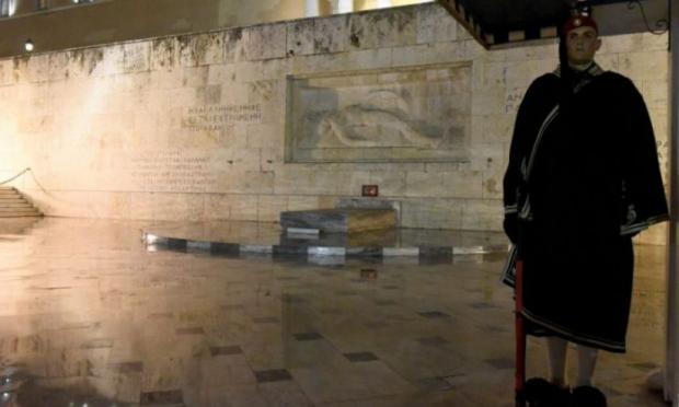 Την ώρα που η κακοκαιρία σαρώνει όλη την Ελλάδα οι Εύζωνες καλούνται να στέκονται περήφανοι και αγέρωχοι μπροστά από το Μνημείο του Αγνώστου Στρατιώτη.