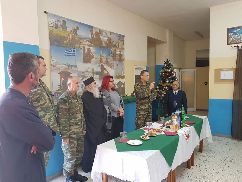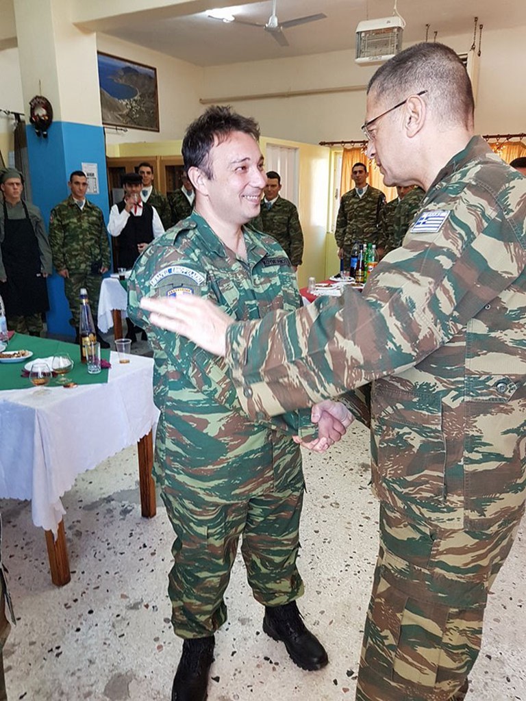 - Στο 549 Τάγμα Εθνοφυλακής στη ΣΥΜΗ, όπου γευμάτισε με το προσωπικό