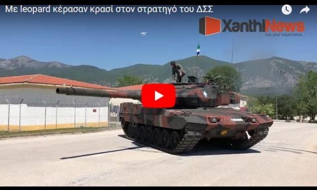 Οι συνεργάτες του στρατηγού είχαν μια πολύ καλή ιδέα να προσφέρουν ένα ποτήρι κρύο λευκό κρασί στο στρατηγό για την ονομαστική του εορτή πάνω σε ένα Leopard 2 Hel και συγκεκριμένα στην κάννη του πυροβόλου των 120 mm του, δείχνοντας έτσι και τις εξαιρετικές δυνατότητες σταθερότητας και στόχευσης των ελληνικών οπλικών συστημάτων.
