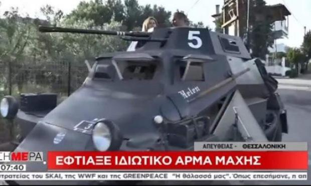 Ένα άρμα μάχης, πιστό αντίγραφο ανάλογου άρματος του γερμανικού στρατού που επιχείρησε κατά τον Β’ Παγκόσμιο Πόλεμο κατασκεύασε ένας ταλαντούχος και ευφάνταστος Θεσσαλονικιός.