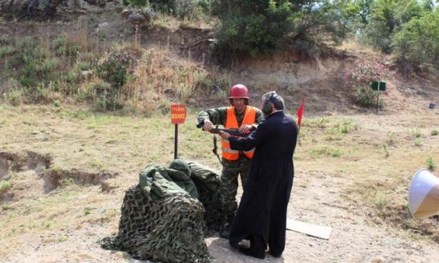 Ο πρόλογος αυτός φυσικά έχει γραφτεί για τον ιερέα που με τα ράσα πήγε μαζί με το ποίμνιό του και ως Εθνοφύλακας κι αυτός θέλησε να κάνει βολές, όχι όμως με κάποιο G-3 αλλά με βομβιδοβόλο όπως διακρίνεται και στην εικόνα.