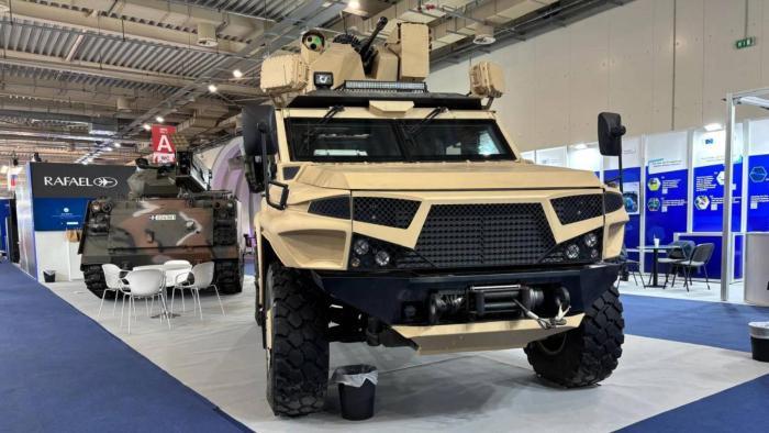 Πρόκειται για το SandCat MkV, ένα σύγχρονο θωρακισμένο τροχοφόρο όχημα, το οποίο ανήκει στη νέα γενιά της γνωστής οικογένειας SandCat της Plasan. Το συγκεκριμένο μοντέλο αποτελεί την τελευταία πρόταση της ισραηλινής αμυντικής βιομηχανίας στον τομέα των ελαφρών θωρακισμένων οχημάτων, συνδυάζοντας υψηλή κινητικότητα, προστασία και μεταφορική ικανότητα.