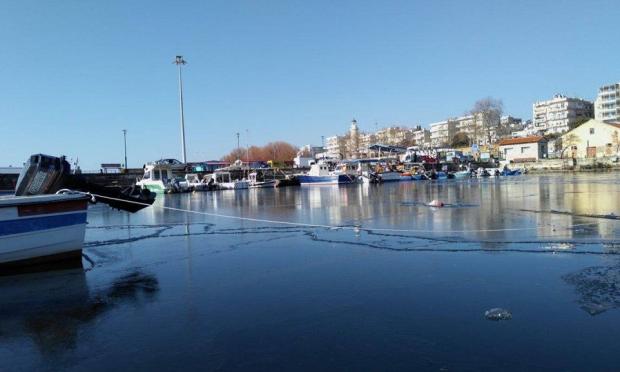 Στρώμα πάγου αντίκρισαν νωρίτερα το πρωί, όσοι έκαναν τη βόλτα τους στο λιμάνι της Αλεξανδρούπολης.
