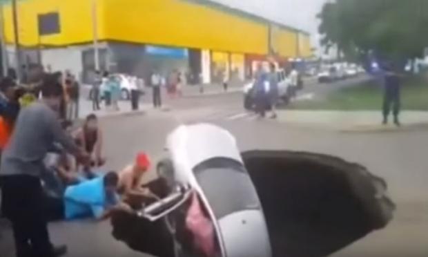 Τρύπα με διάμετρο 5 μέτρων, άνοιξε σε οδόστρωμα της βορειοδυτικής πόλης Τρουχίγιο του Περού, καταπίνοντας μια άτυχη οικογένεια η οποία βρισκόταν μέσα στο αυτοκίνητό της εκείνη τη στιγμή.