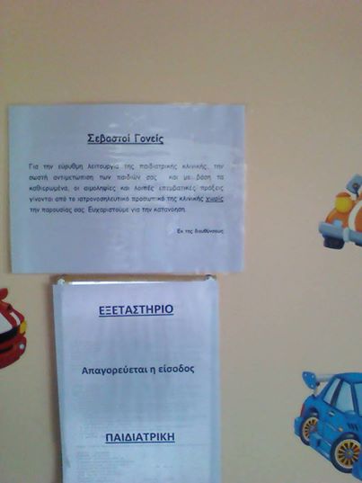 - Παράδειγμα της πραγματικότητας:Φωτογραφία απο ανάρτηση σε πόρτα της παιδιατρικής κλινικής του νοσοκομείου Αλεξανδρούπολης.