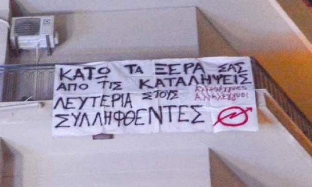 Οι αντιεξουσιαστέςδήλωσαν ότι κάνουν κατάληψη του χώρου , σε ένδειξη συμπαράστασης στους 70 περίπου συλληφθέντες της Θεσσαλονίκης, μετά από επιχείρηση εκκένωσης 3 κατειλημμένων κτιρίων στη συμπρωτεύουσα από ομοιδεάτες τους.