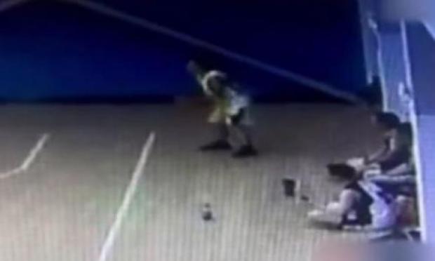 Όπως φαίνεται στα πλάνα ο παίκτης αλλά και οι θεατές γλίτωσαν από καθαρή τύχη.