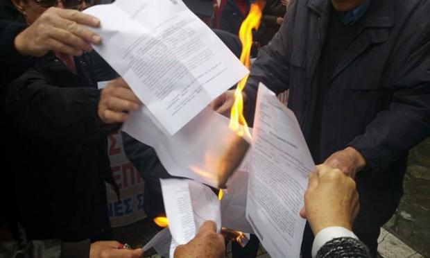 Συνταξιούχοι της Λάρισας πραγματοποίησαν κινητοποίηση έξω από τα γραφεία του ΙΚΑ στην πόλη, καίγοντας συμβολικά την επιστολή που είχαν παραλάβει από τον τέως υπουργός Εργασίας Γιώργο Κατρούγκαλο και αφορούσε τις συντάξεις τους.