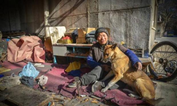 O σκύλος του όπως μπορείτε να δείτε και στις φωτογραφίες τον βοηθάει από τις δουλειές μέχρι να φτάσει στην δουλειά του όταν εκείνος κουράζεται. Είναι πάντα εκεί για το αφεντικό του, φύλακας – άγγελος.