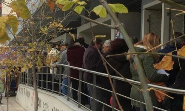 Με μία μόλις ταμία, η «ουρά» προχωρούσε σημειωτόν. Το εσωτερικό του κτιρίου ήταν γεμάτο, ενώ έξω από τις κλειστές πόρτες που λειτουργούν με σύστημα ελεγχόμενης εισόδου- εξόδου, περίμεναν μέσα στο κρύο, δεκάδες.
