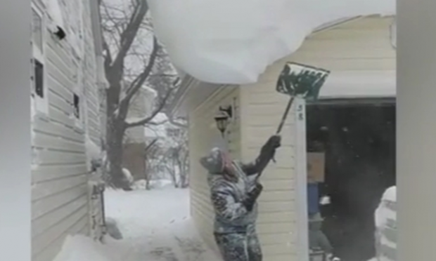 Απίθανη χιονόπτωση στην Οτάβα είχε ως αποτέλεσμα εικόνες σαν κι αυτές που θα δείτε στο βίντεο με πάνω από μισό μέτρο χιόνι στις στέγες σπιτιών και μια γυναίκα να προσπαθεί να το απομακρύνει και να το... τρώει πάνω της.